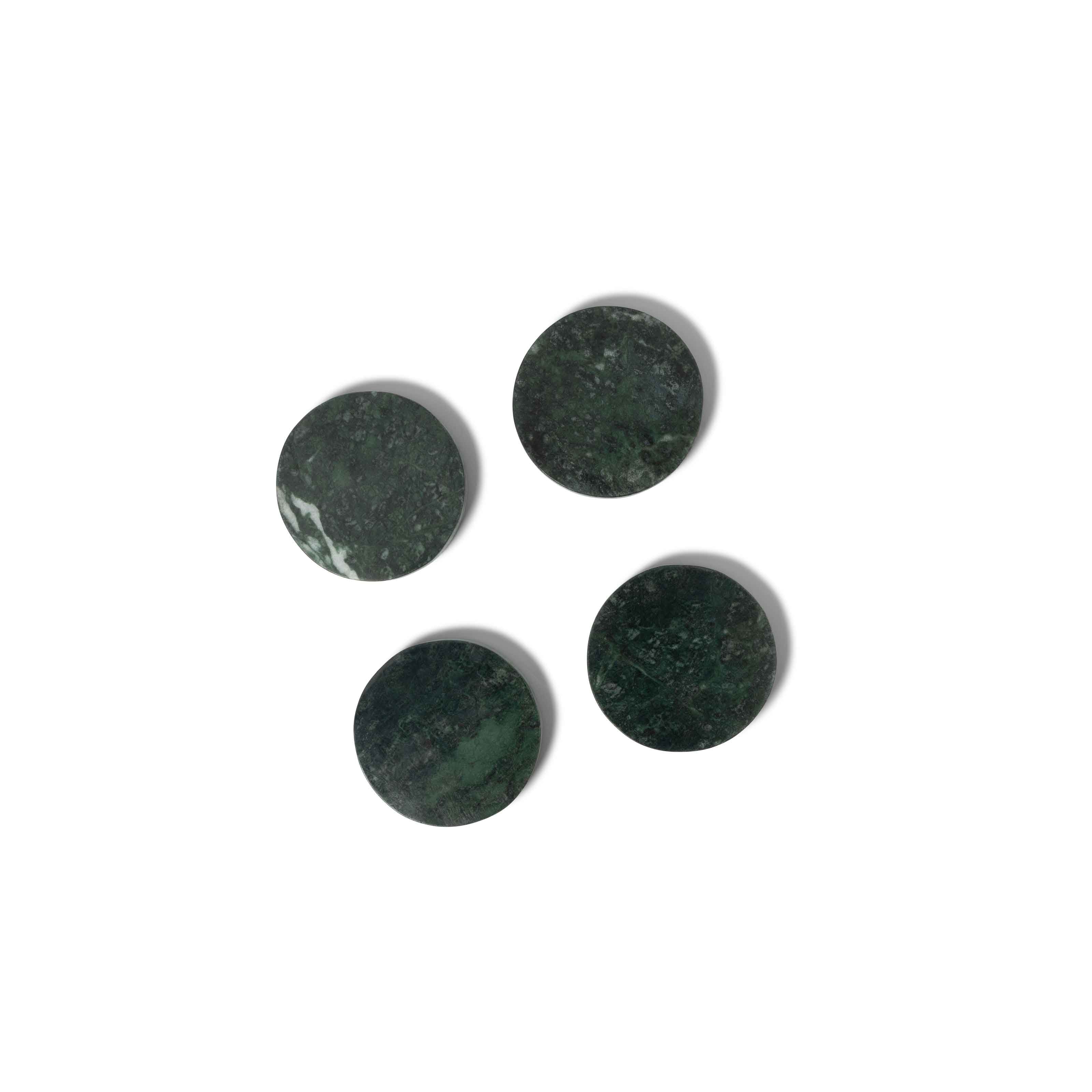 These round coasters are crafted from solid green marble, featuring rich natural tones and distinctive veining that make every piece unique. The deep green surface adds depth and character to your table while keeping the look timeless and refined.
